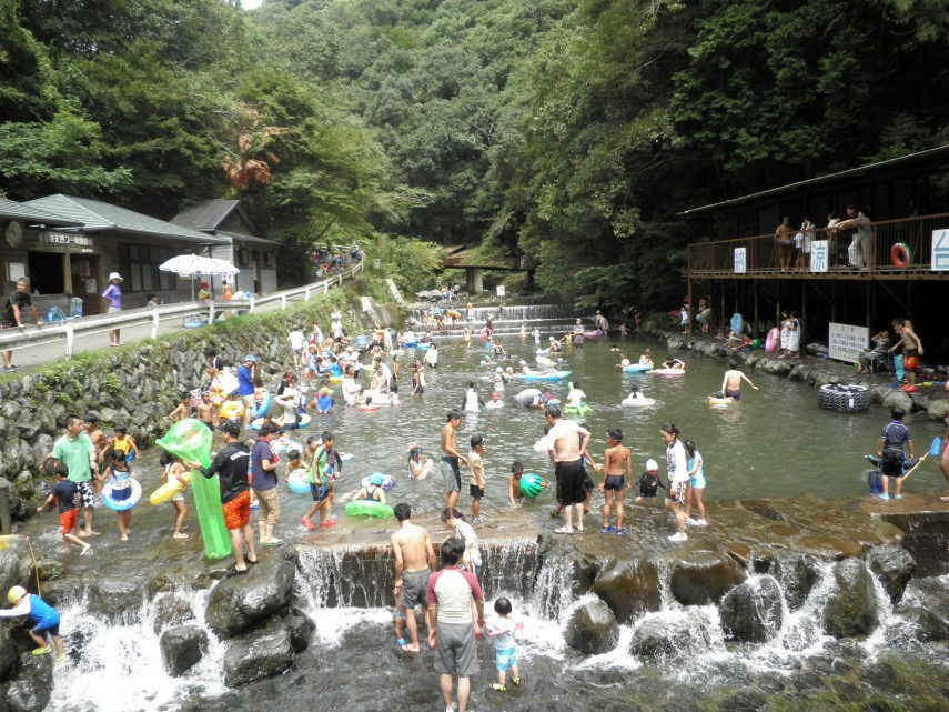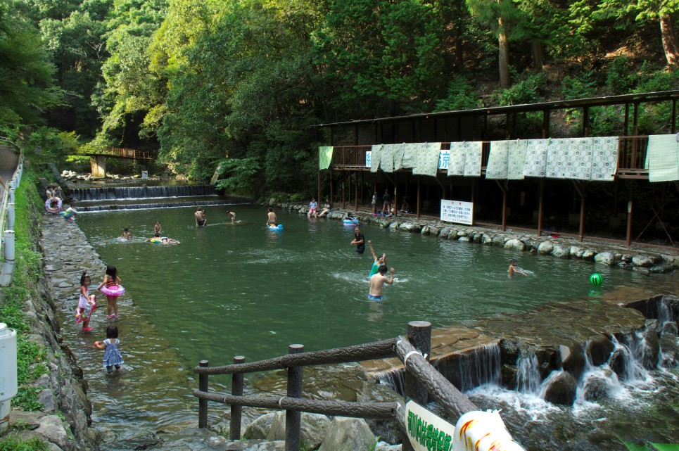 自然の川を利用し、多度川をせき止めて作られたプールです。