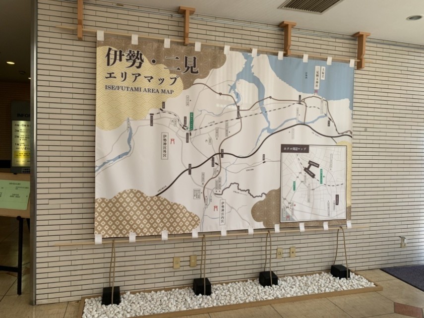 こんにちは。今回は新しく1階ロビーに設置された伊勢・二見エリアマップを紹介します。