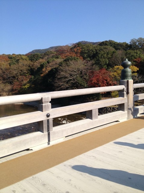 五十鈴川御手洗場では色づき始めた木々たちが水面に映りとてもきれいな風景です(^^♪ 宇治橋から見える景色も素晴らしいです!