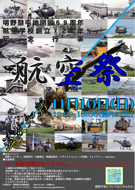 さて今回は、三重県 伊勢市にある航空学校が所在する陸上自衛隊 明野駐屯地で「明野駐屯地 開設69周年・航空学校 創立72周年記念行事」が実施されます。