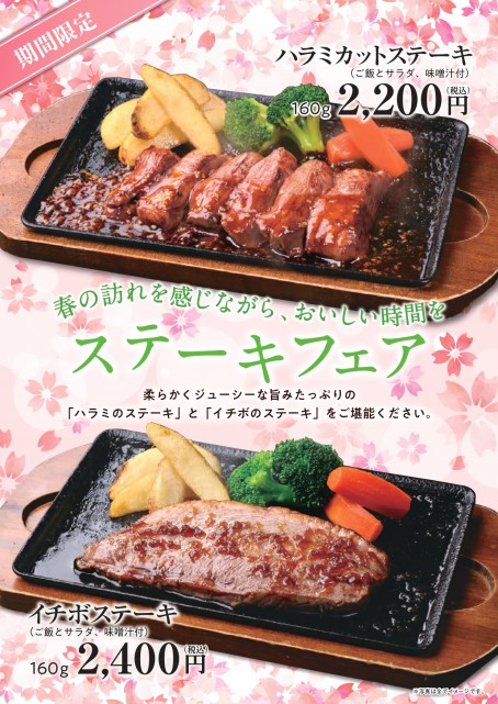 3月1日から期間限定、ステーキフェアのメニューをご紹介いたします。