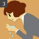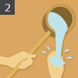 ひしゃくを右手に持ち替え、左手に一口分の水を受け、口をすすぎます。その後、もう一度左手を浄めます。