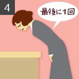 両手でひしゃくを垂直に立て、残った水で柄の部分を清めます。ひしゃくを元の位置に戻し、最後に一礼します。