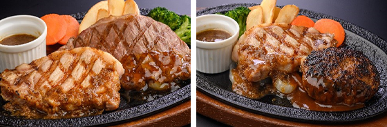 松阪牛ステーキからハンバーグ、牛肉と豚肉の食べ比べまで色々なお肉料理の組み合わせをご用意しております。