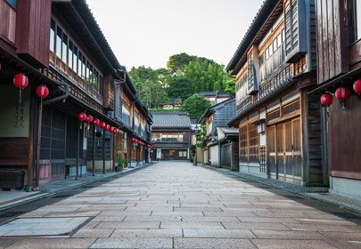 金沢に残る3つの茶屋街のうち、最も規模が大きく、格式と賑わいを誇る茶屋街として重要伝統的建造物群保存地区に指定されています。石畳の道の両側には紅殻格子のお茶屋が並んでおり、江戸時代の雰囲気を色濃く残しています。当時の様子を伺える施設もあり、有料で内部を見学できます。今でも営業しているお茶屋もあり、三味線の音が聞こえてくることもあります。