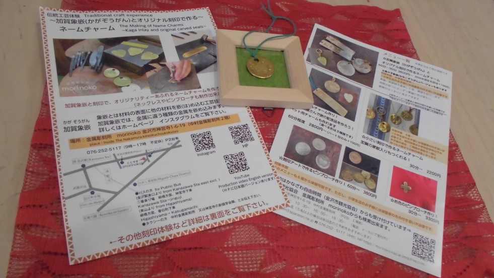 加賀象嵌では、金属に違う種類の金属を嵌め込みますこの伝統を受け継ぎながら体験プログラムを行っているお店がホテルそばにございます。