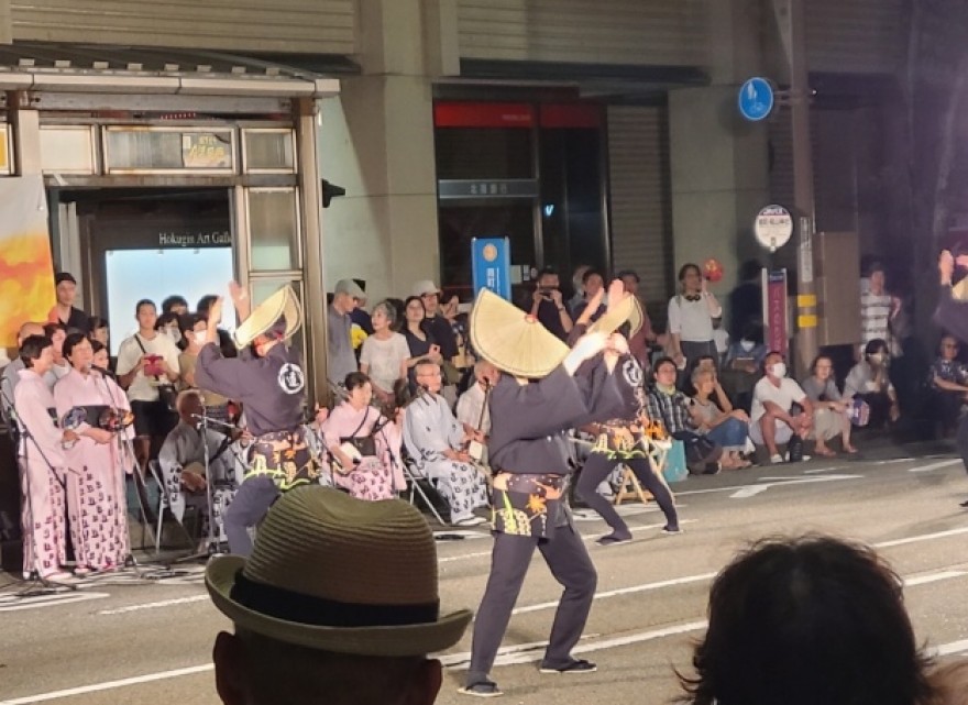 YOSAKOIソーランのステージ演舞やマーチングバンド演奏など、多彩なパフォーマンスが繰り広げられ、夏の金沢の風物詩となっています。
