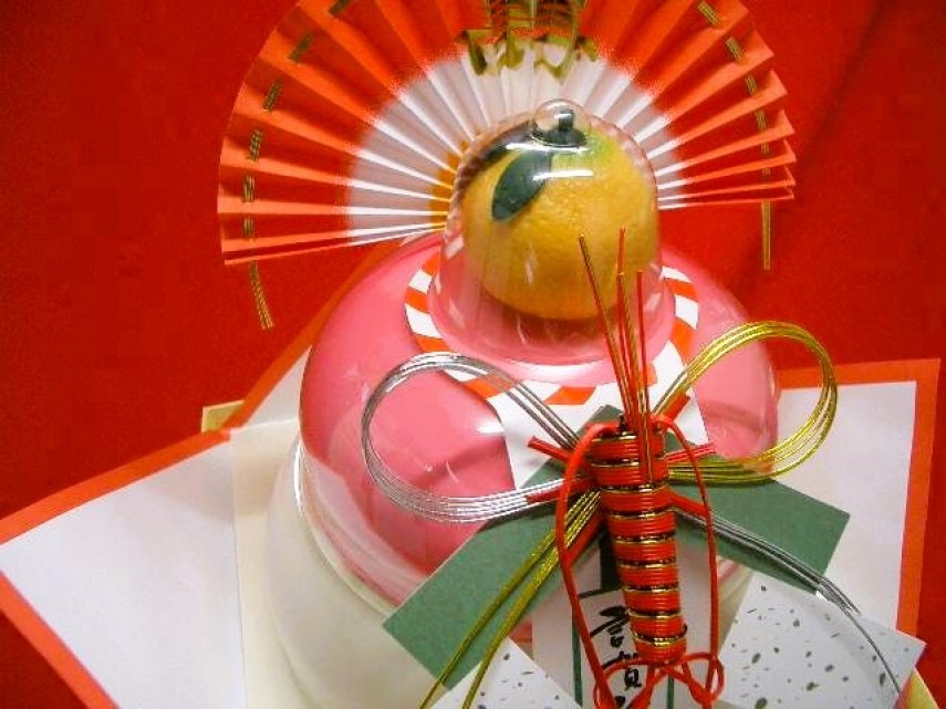 新春の金沢では、紅白の鏡餅をお飾りする風習があります。