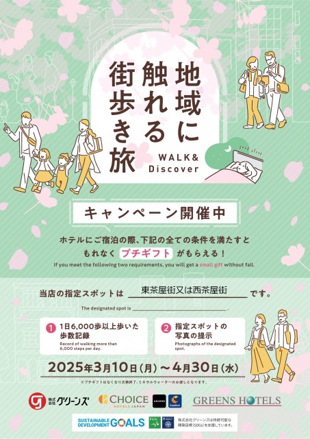 当館では現在、お客様の健康増進を目的とした街歩き旅キャンペーンを実施中です。
