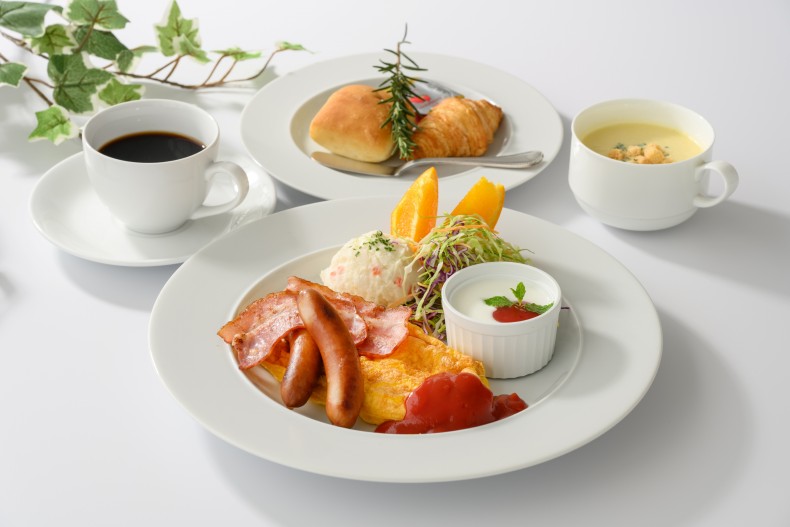 明るい朝食コーナーで朝のひと時をごゆっくりお過ごしください。