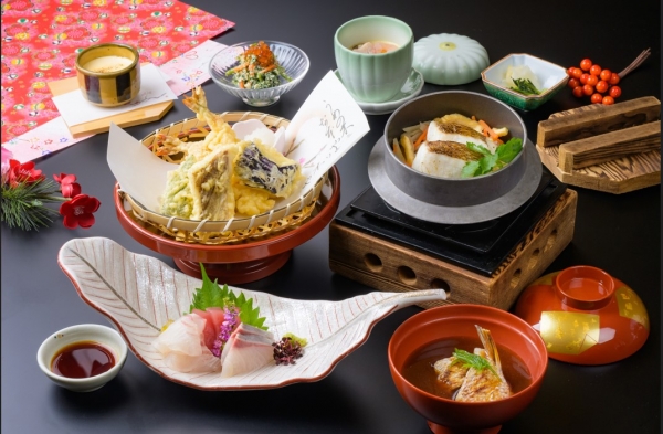 お正月にふさわしい鯛づくしの華やかなお料理をご用意しました。