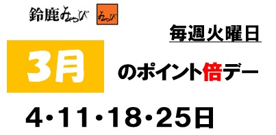 3月ポイント倍デーのお知らせ