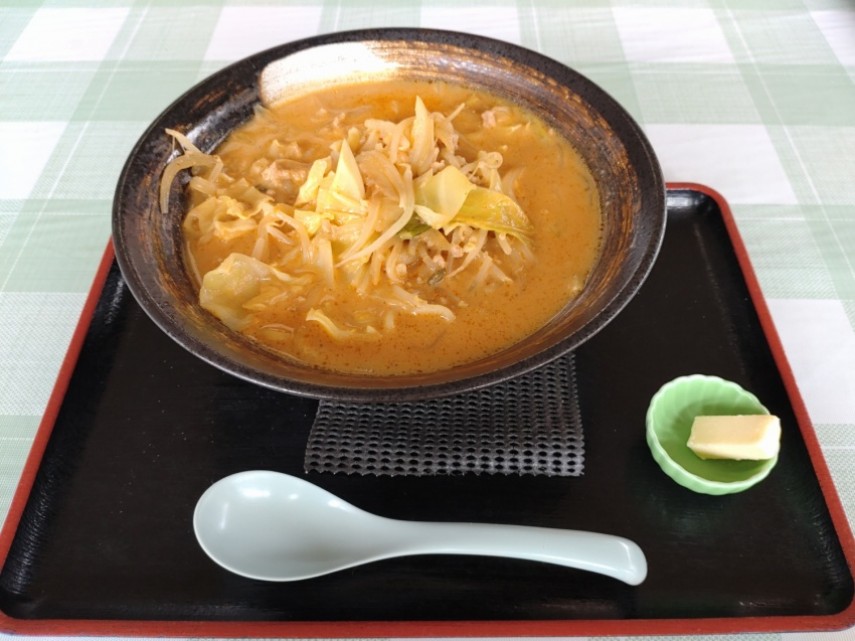 別添えのバターを溶かすと風味が柔らかくなり、スープがまろやかに