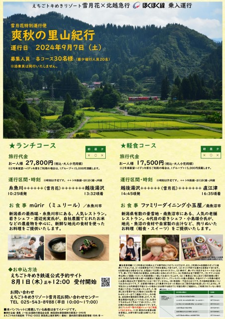 地元の名シェフが監修した特別なメニューで、日本海の海の幸や新潟の地酒など、地域の味覚を楽しむことができます。