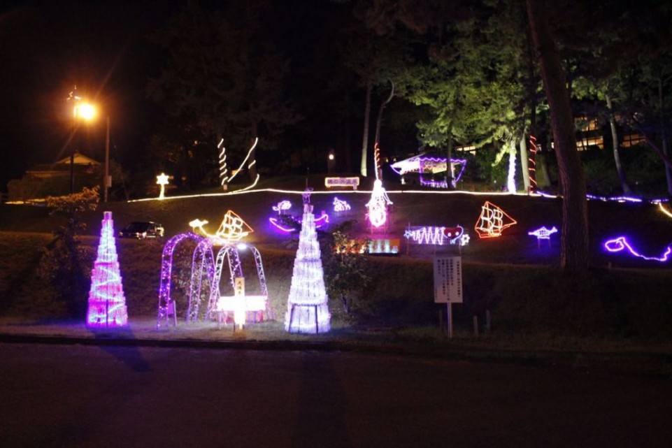 鵜の浜人魚館前の自然公園をメイン会場に、イルミネーションが彩ります。