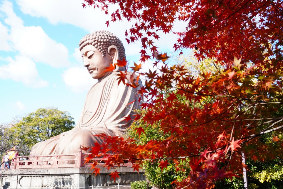 聚楽園公園内の大仏の周りを囲むように美しく紅葉するのが見ものでございます。