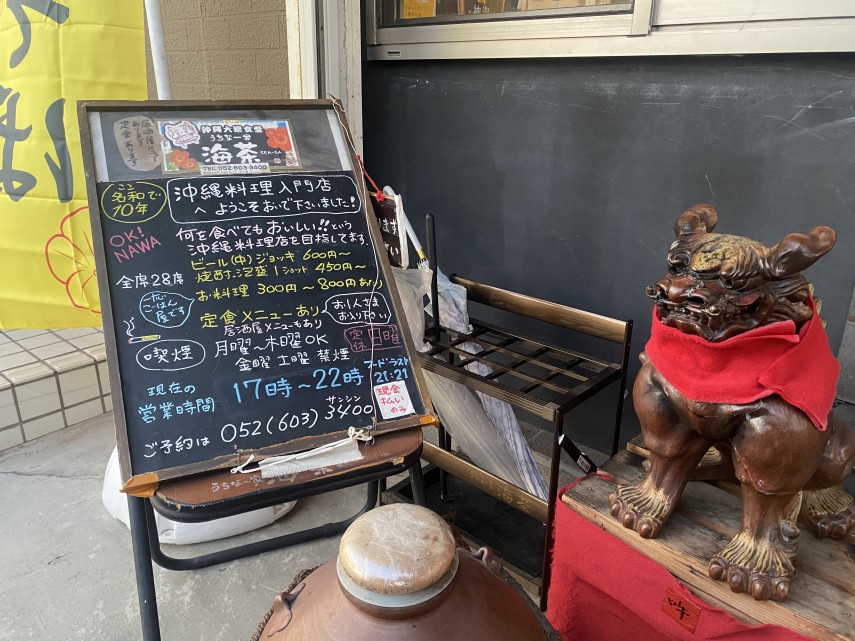 名和プラザホテルから徒歩約5分、「うちなー家 海茶」は、沖縄の家庭料理が楽しめる大衆食堂で、地元の方にも愛される隠れた名店です。