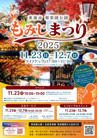 今回は、東海市の『聚楽園公園』で開催されるもみじまつりをご紹介します。