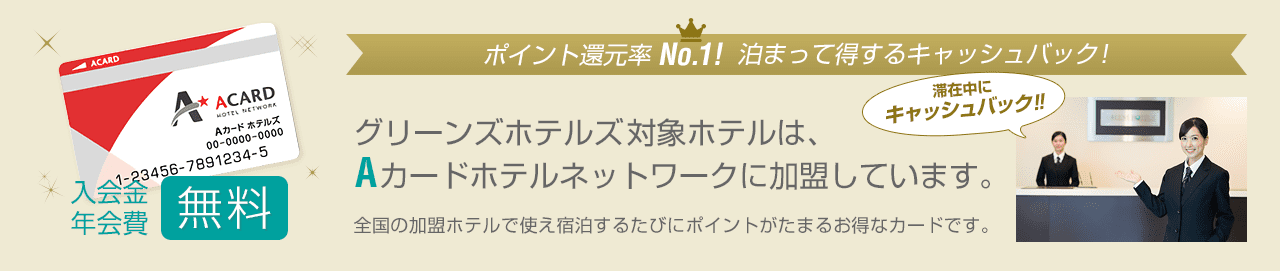 キャッシュバック業界NO.1! 全国の各ホテルが発行しているポイントカードシステムの中で、「キャッシュバック率NO.1」のカードです。