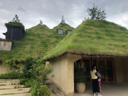 施設内には珍しい芝で覆われた建物があり、自然な外観とは違い、建物内はオシャレなデザインです。