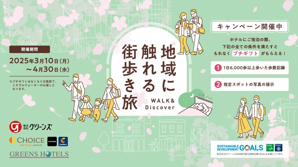 この度、株式会社グリーンズが運営するホテルにおいてウォーキングを始めるきっかけ作りとして