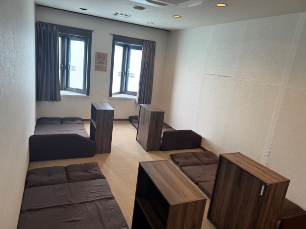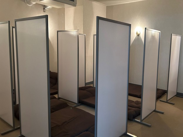 女性休憩室も男性同様に寝返りもできる大きめのマットに