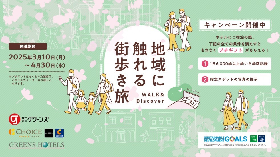 ※グリーンズホテルズ・Ascend Hotel Collection(TM)を運営する株式会社グリーンズでは、SDGsとして掲げる「すべての人に健康と福祉を」を目指し、