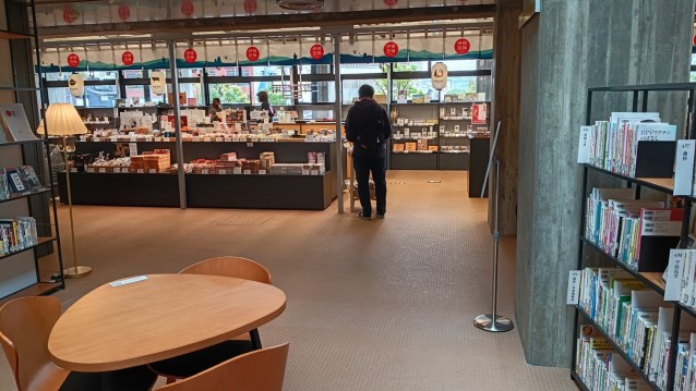 図書館・ホテル・カフェ・観光案内所・お土産店が一体化した複合施設で