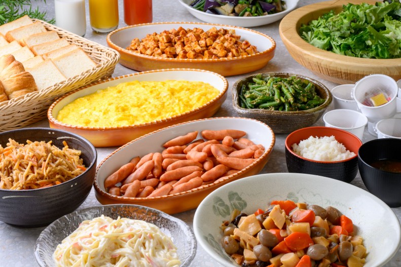 スタッフが毎朝心を込めて、日替わりのお惣菜をご用意! 連泊のお客様にもお楽しみいただけるよう、工夫してご提供いたしております。