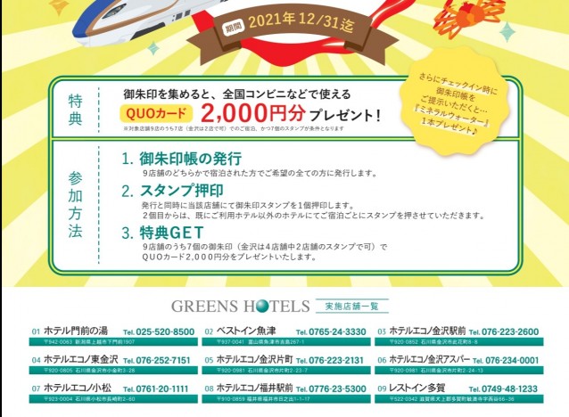 ホテルエコノ金沢アスパー、ホテルエコノ小松、ホテルエコノ福井駅前、レストイン多賀