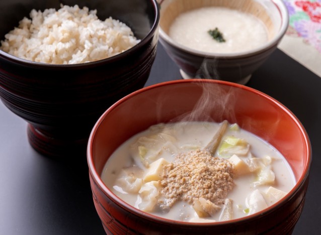 ■日替り味噌スープ…豆乳味噌スープ、具だくさん豚汁、あおさとつみれの味噌スープ、しじみ汁