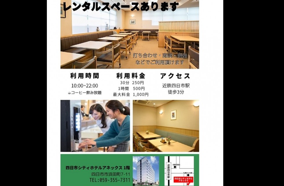 四日市シティホテルアネックスのコワーキングスペースをぜひご利用くださいませ!