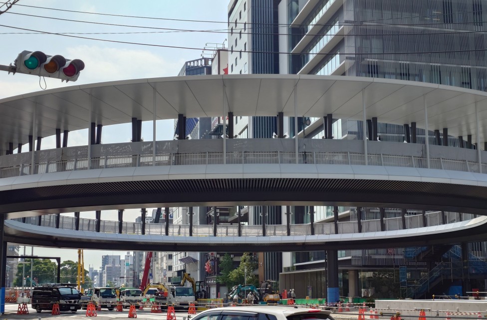 近鉄四日市駅近くに円形デッキの整備が進められておいます。